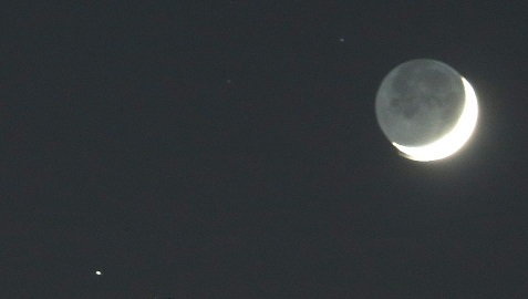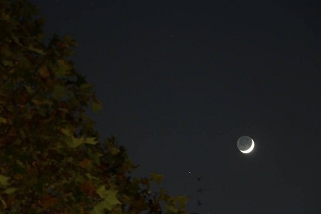 Click. All'improvviso mi sono sentito chiamare irresistibilmente da un sussurro fuori dalla finestra e nel cielo la piccola falce di Lu, con il cuore in gola ho montato la Canon sul cavalletto e ho scattato, incredulo da tanta fortuna, anche ad occhio nudo si osservava il fenomeno della luce cinerea, i raggi del Sole riflessi dalla Terra verso la Luna che appare illuminata anche nella parte in ombra, insomma una specie di luna piena fuori dalla norma. E poi le stelle e gli alberi, ero tanto soddisfatto ed esultante che ho mandato la foto a tutti gli amici, aspettandomi commenti estasiati.